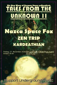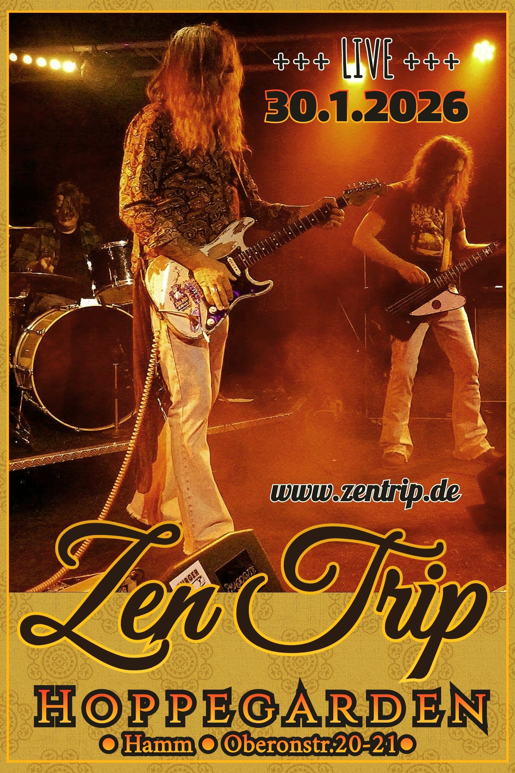 Das Dortmunder Trio Zen Trip ist fest verwurzelt in den frühen 70igern und huldigt ihren Vorbildern wie Jimi Hendrix, Black Sabbath und den frühen Pink Floyd -ohne- zu kopieren oder nachzuspielen.